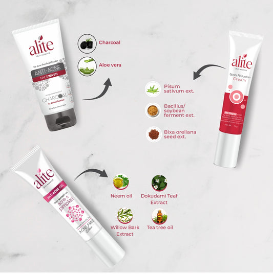 Combo Of Alite Foaming Facewash 60ml, Anti Acne Facewash Charcoal 70g, anti acne Gel 15g and Spot Reduction Cream 15g